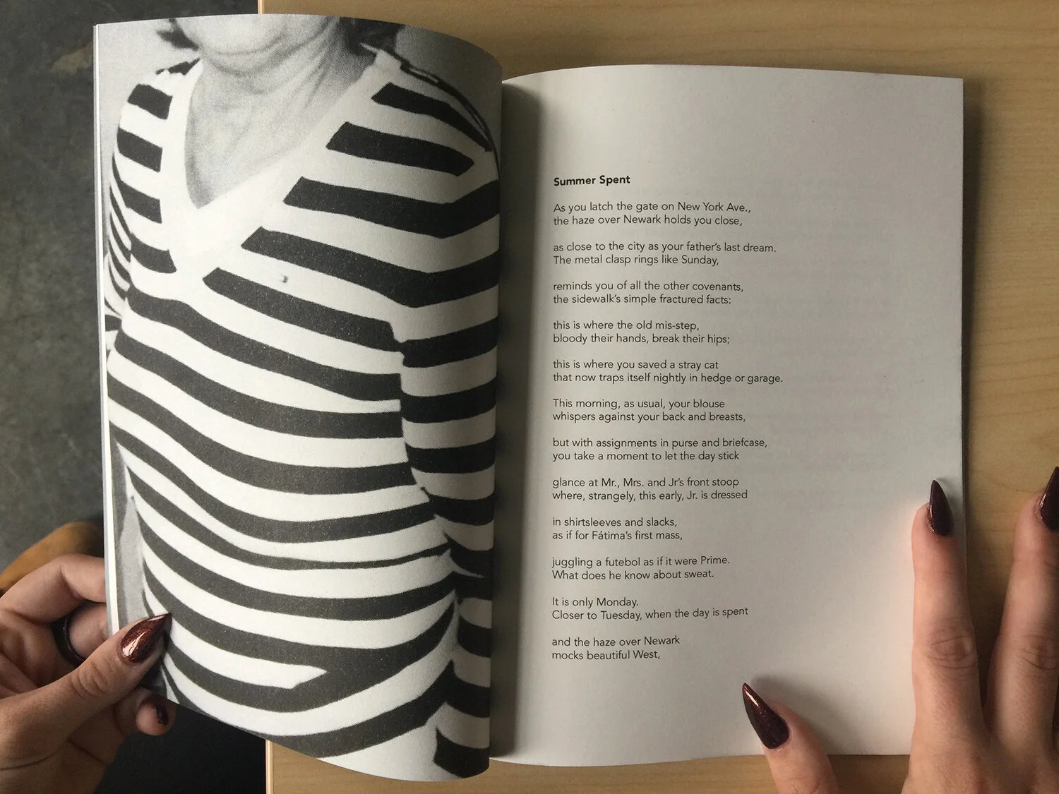 paulA neves & Nick Kline. Consists of a series of photographs by Nick Kline depicting horizontal lines composed from a selection of striped shirts worn and owned by paulA neves’ late mother, Maria, and snapshots of these same shirts framed from moments as they were worn in life, accompanied by paulA neves’ poems and essays. It is a meditation on immigration, insularity, acculturation—what it means to be American, mother, father, child, adult, and gendered within inherited legacies of cultural trauma and comfort, with Newark, NJ and its greater metro area’s Portuguese community always a presence. Shirts & Skins considers what it means to be whole and alive in one’s skin.